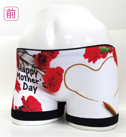 母の日 カーネーション柄 8文字まで名入れできるレディース用ボクサーパンツ カーネーションデザインのベースに、左フロントにゴールドのハートマーク、そしてその中に8文字まで名入れができます。