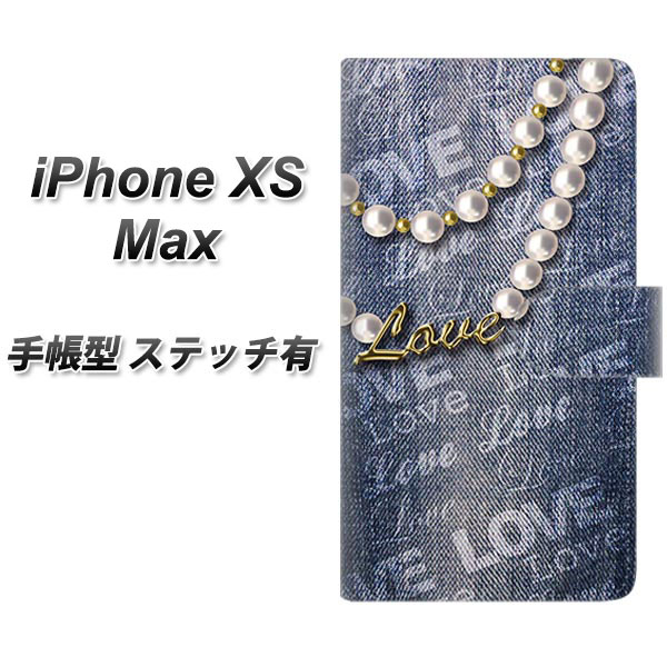 Apple iPhone XS Max 手帳型 スマホケース カバー 【ステッチタイプ】【SC917 ダメージデニム パール UV印刷】
